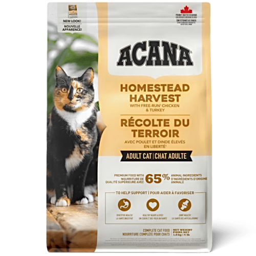 Feed your little wildcat a diet packed with quality animal ingredients. NEW ACANA Homestead Harvest is packed with free-run chicken, turkey, and duck, in WholePrey ratios of poultry, organs, and cartilage, nourishing your cat naturally while offering a taste they crave, and keeping them healthy, happy, and strong.