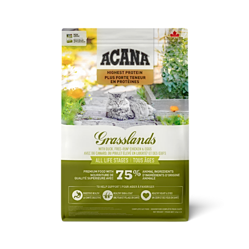 Prepared in our Kentucky DogStar kitchens from America’s best and freshest ingredients, ACANA Grasslands is guaranteed to keep your cat healthy, happy and strong.
