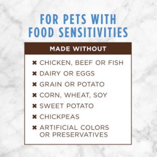 - Purposefully simple ingredient list for pets with food sensitivities - ONE ANIMAL PROTEIN and ONE VEGETABLE