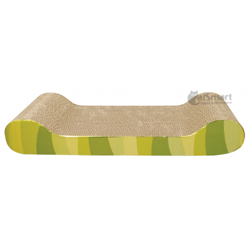 Catit Style Patterned Cat Scratching Board with Catnip, Jungle Stripes. Lounge-shaped corrugated cardboard scratcher with green jungle stripe pattern printed on sides. Length 49.5cm (19 1/2). Catnip Included.