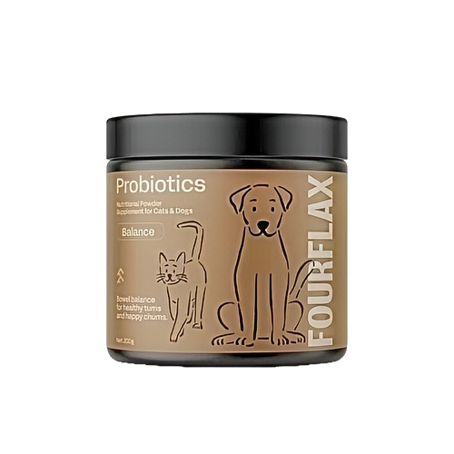 From our family to yours, Fourflax Probiotics is New Zealand's most popular dog probiotic supplement, supporting digestive health, bowel function, and freedom from upset tummies. This powerful blend of prebiotics and probiotics promotes a healthy gut balance, addressing sensitivities, paw licking, and dry skin itchiness. Rich in dietary fiber, it helps with constipation, stool consistency, and anal gland issues, while boosting immunity and nutrient absorption. Ingredients: Flax seed fiber, oligofructose, ProN8ure probiotic, yeast mannan, natural antioxidant.