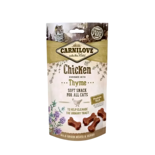CARNILOVE Chicken enriched with Thyme soft cat treats is a complementary snack for all cats.