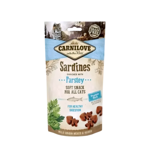 CARNILOVE Sardine enriched with Parsley soft cat treats is a complementary snack for all cats.