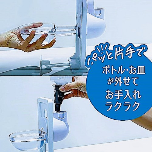 The bottle and dish can be removed with one hand, making it easy to change water and clean! A dish type that is safe for dogs and cats who are not good at nozzle types.