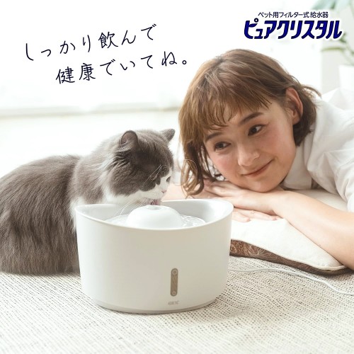 - Maintain healthy lower urinary tract Ionic removes magnesium and calcium in tap water and is gentle on pets. Activated carbon absorbs a chalky odor to make it tasty water. Made of environmentally friendly plastics [Veterinarian recommended] Drinking a lot of water is important to maintain health. The pure crystal allows you to drink more water than you like. (Recommended by our veterinarians) ) Specially designed for cats : funnel shape suitable for drinking cats without water.