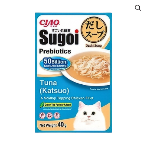 Indulge your kitty with the irresistible blend of tender chicken fillet, flavourful tuna katsuo and delicate scallop. This silky broth is a gourmet treat your cat is sure to fall in love with.