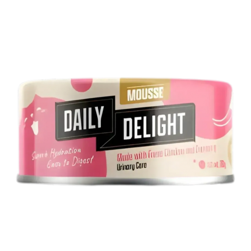 Daily Delight Mousse has a puree texture and is 100% grain-free and suitable for kittens, post-surgery cats, nursing/pregnant cats and senior cats.