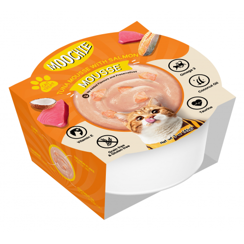 Moochie Cat -Inspired by Cats' Natural Prey Diets. Tuna Mousse with Salmon.