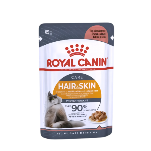 Royal Canin Hair & Skin (Intense Beauty) Adult Pouch Cat Food is formulated to be a nutritionally complete & balanced wet diet for adult cats that can support skin & coat health.